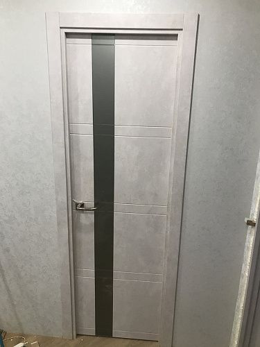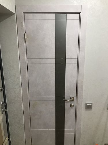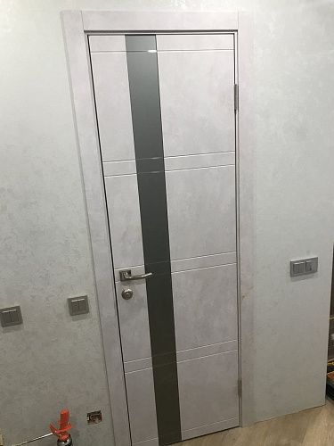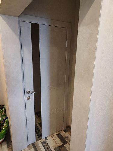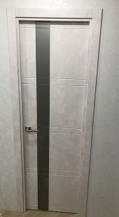 Дверь ПО Evolution 1 Бетон лайт стекло зеркало-графит из Экошпона COVERFLEX (Двери Нева) в Гатчине с установкой и доставкой