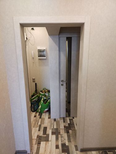 Кроме того производится врезка под скрытые петли. Такая опция помогает избежать лишних пыльных работ на адресе и сокращает время работы на монтаже. По возможности врезки в конкретную модель уточняйте у менеджеров.