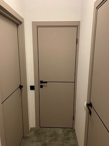 Дверь ПГ Indigo 39 Макиато с черной алюм. кромкой врезка 10М из Экошпона COVERFLEX (Двери Нева) в Гатчине с установкой и доставкой