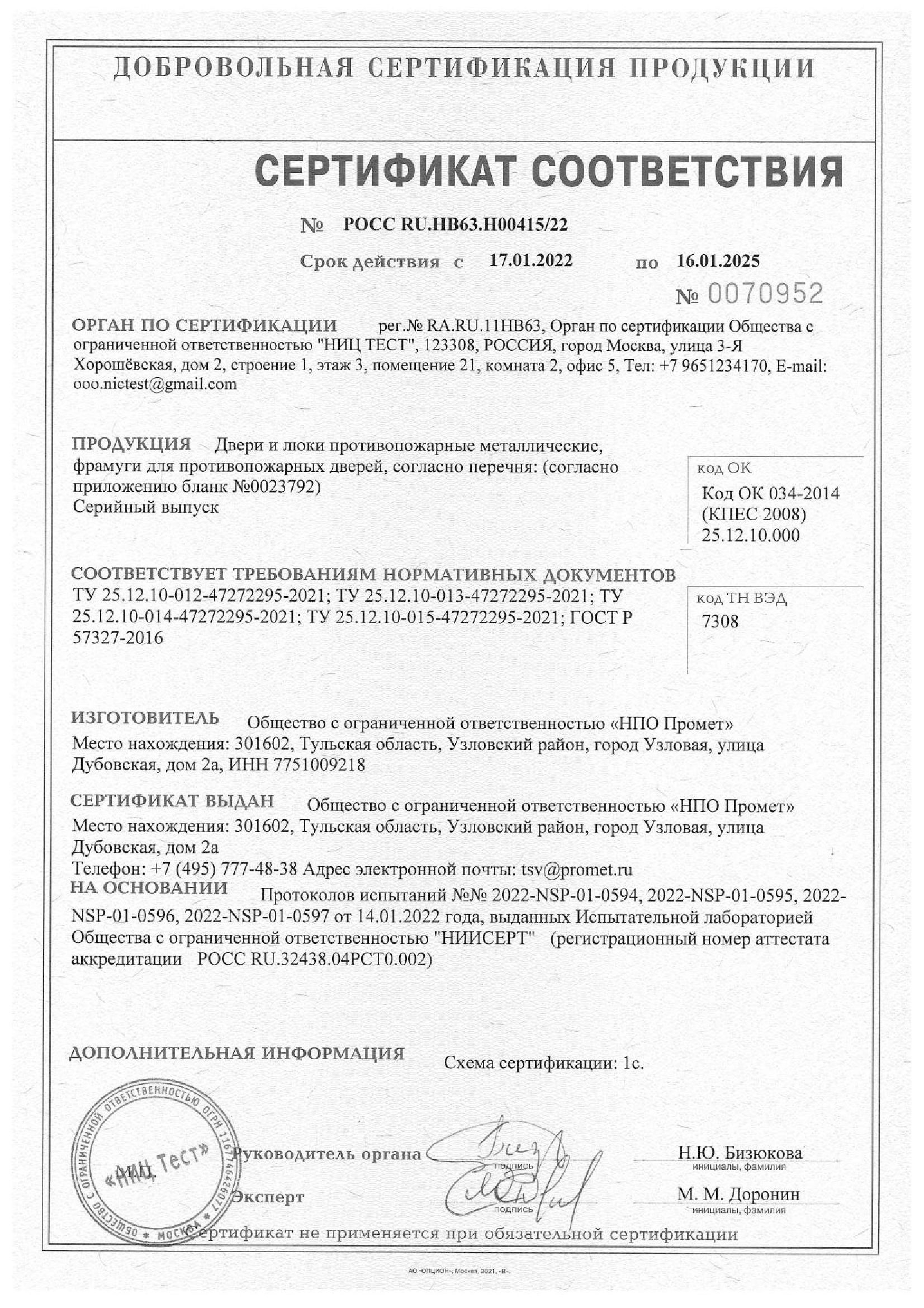 Сертификат соотвествия